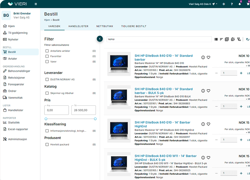 Using Vieri, you can move away from spreadsheets and emails and instead handle all purchases in one cloud-based platform. Employees follow a guided purchasing flow with approved suppliers, and all data integrates directly with your ERP system. This reduces errors and increases visibility.